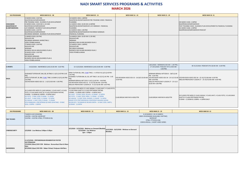 JADUAL PROGRAM & AKTIVITI PERKHIDMATAN PINTAR NADI MAC 2026