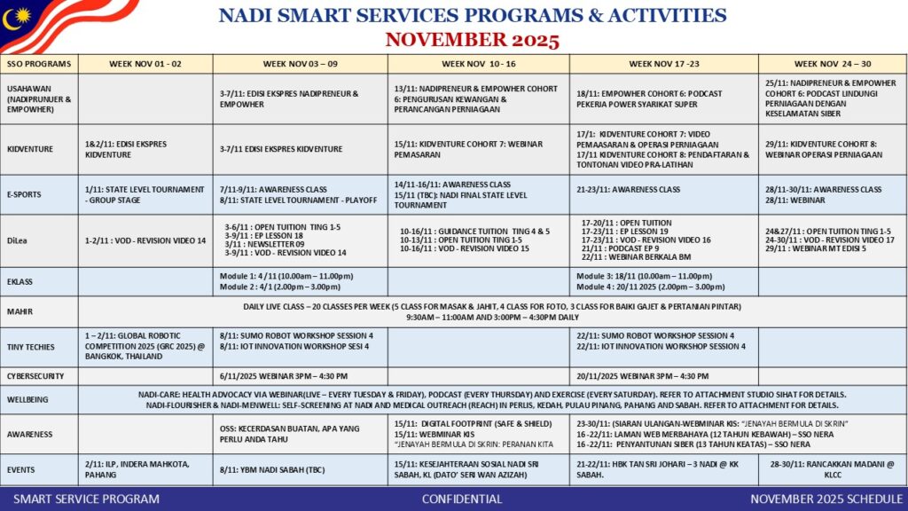JADUAL PROGRAM PERKHIDMATAN PINTAR NADI – NOVEMBER 2025
