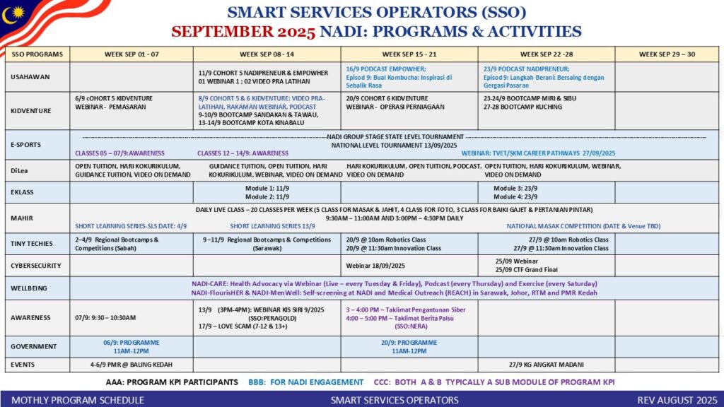 TAKWIM PERKHIDMATAN PINTAR NADI – SEPTEMBER 2025